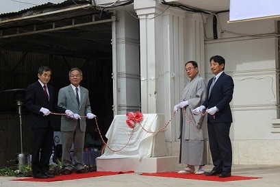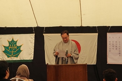式典においては、相澤実行委員長(日本人会長)、亀山学校長、続いて齊藤大使からの祝辞、日本人会から寄贈された記念石碑の除幕式等が執り行われました。
