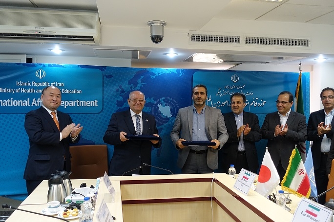 جناب آقای محسن اسدی لاری، معاون وزیر در امور بین الملل وزارت بهداشت، درمان و آموزش پزشکی، جناب آقای موسوی، مدیر کل امور بین الملل محیط زیست و توسعه پایدار وزارت امور خارجه، جناب آقای امیر ساکی، مدیرکل دفتر توسعه منابع فیزیکی و امور عمرانی وزارت بهداشت، درمان و آموزش پزشکی، جناب آقای سیامک مقدم، رئیس دفتر برنامه اسکان بشر ملل متحد در تهران و جناب آقای تورو موریکاوا، کاردار سفارت ژاپن در تهران در این مراسم سخنرانی کردند و سپس آقای ساکی و آقای مقدم سند پروژه را امضاء کردن.