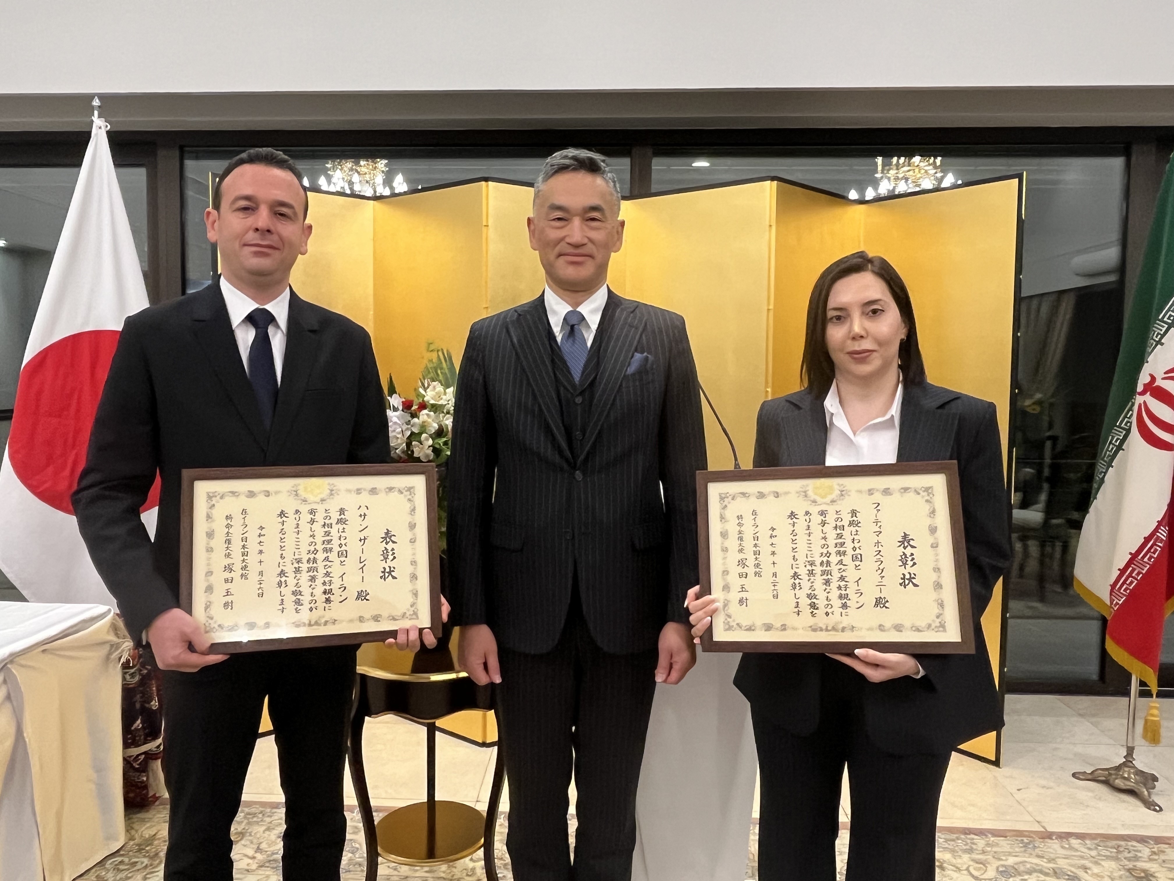 مراسم اعطای تقدیرنامه از طرف سفیر ژاپن در سال 2025 به آقای حسن زارعی و خانم فاطمه خسروانی