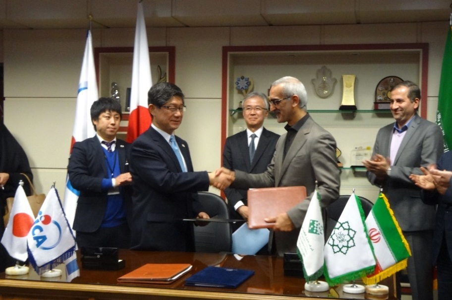 The signing ceremony of Japan Grant Aid to “the Project for Improvement of Equipment for Air Pollution Analysis in Tehran” was held at Traffic & Transportation Affairs, Municipality of Tehran on 12 February 2018.